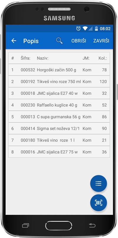 Aplikacijom Popis popišite robu, osnovna sredstava, ambalažu, prijem robe, otpis i td.